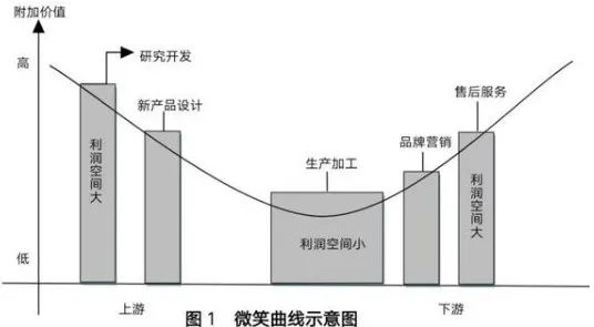 制造业的利润分布可以用微笑曲线进行描述:技术研发与品牌营销位于高价值空间,生产制造位于低价值空间。利润水平决定了对软件系统的购买力,高利润环节的供应商更有机会获得高营收,完成产品化所需的技术、资金积累。
