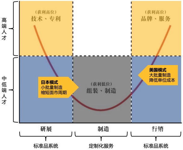 传统的工业化生产是典型的美国模式,通过规模让利润空间小的生产制造环节成本摊薄;而日本制造的突破口是改进生产管理和技术工艺,垂直整合供应商降低交易成本,导致一方面软件作为独特的管理流程与工艺过程的载体,需要高度定制化;另一方面软件企业作为一类共享内部知识的供应商,需要高度整合。