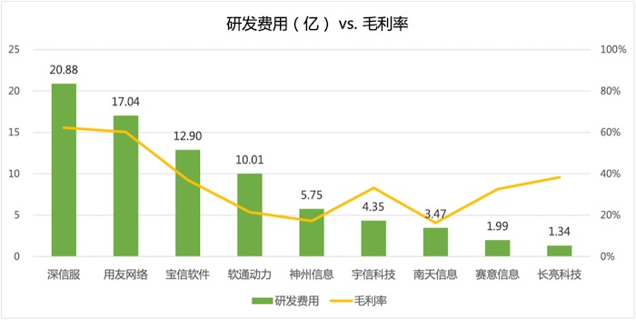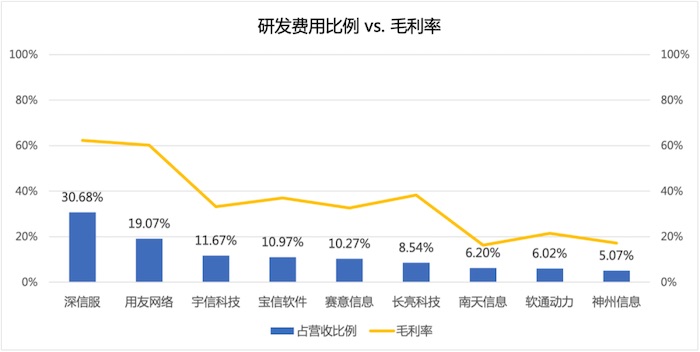 研发驱动型企业的特征:与技术趋势紧密结合,采用高研发人员比例、高端人才结构和高薪酬投资研发,通过高技术获得高利润率。典型代表是深信服,其安全类产品专业化较强,毛利率较高。