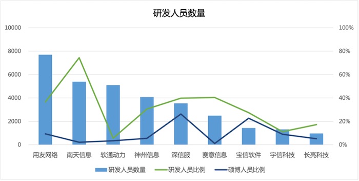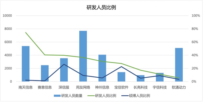 南天信息和赛意信息正在扩张研发人员规模,但行业的技术要求并不高,也存在一定的投入风险,如壁垒不强,对潜在竞争对手来说门槛低,很难取得研发投入的持续累积性回报。