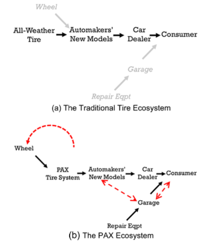 米其林PAX防爆轮胎,就利用了生态系统结构调整,来使市场接受这项创新。